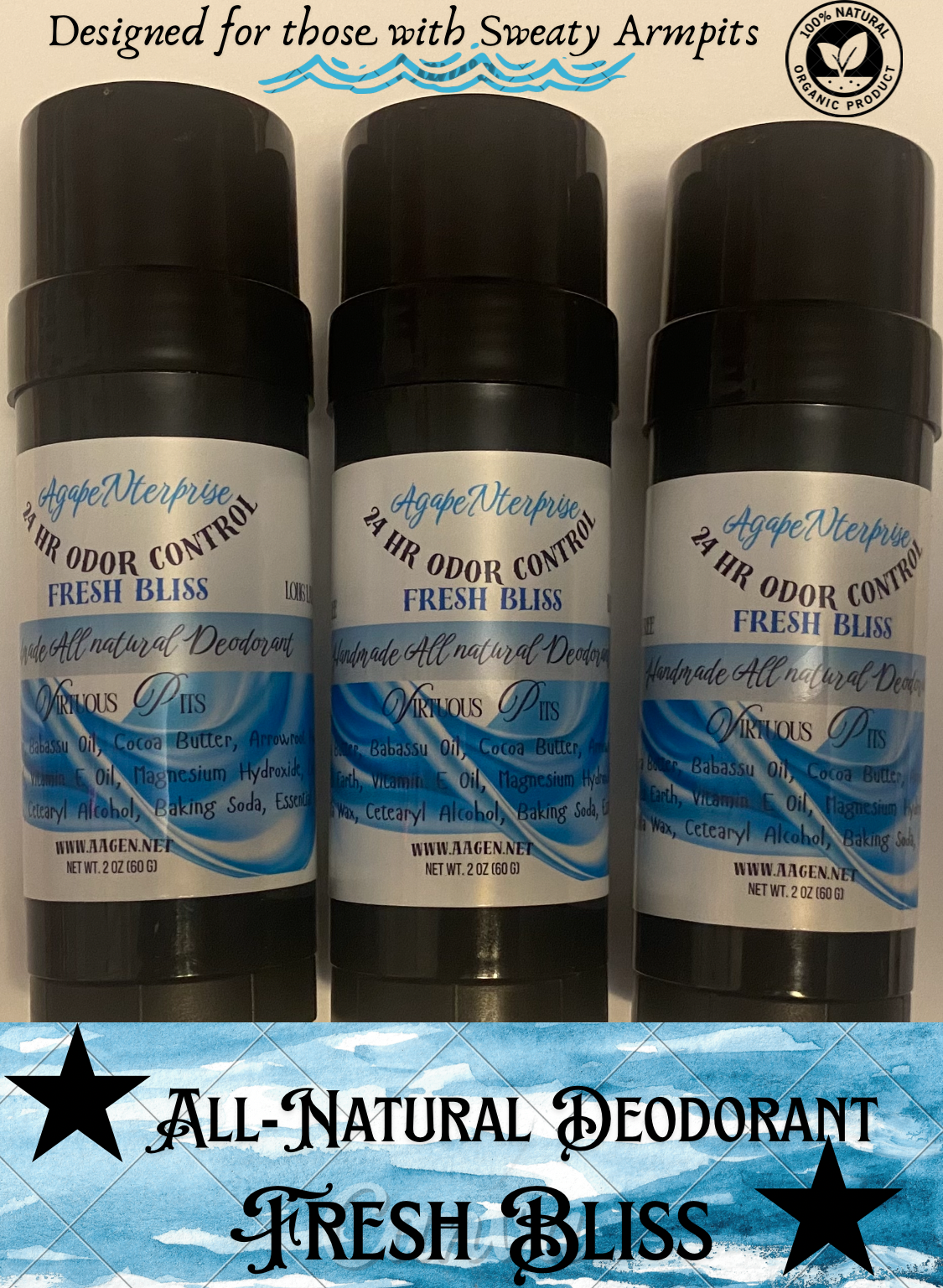 Aluminum FREE Plant Based Organic Deodorant for those who have problems with your armpits, “Sweat and Smell”. THESE PRODUCTS WERE DESIGNED, Priced and Manufactured Organically Just for “You”…….7