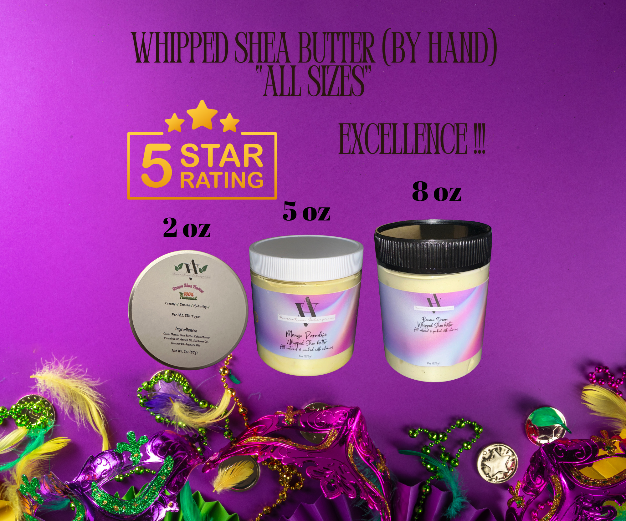 Whipped Shea butter; “HANDMADE”, AND Body Butter, with the FINEST NATURAL INGREDIENTS…(THIS IS THE BEST!!!) IT’S NOTHING like you would buy in a Department or Beauty Supply Store…….7