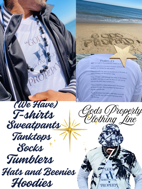 THIS IS OUR (GODS) PROPERTY Clothing line with Our Trademarked Logo. We are ALL About (GOD) and if (HE’S) not GLORIFIED IN EVERYTHING we do, we don’t want it…….We Created this ourselves and take Pride in it all because of (WHO) we live for and Represent. When you step out of your closet or house, who are you representing ???