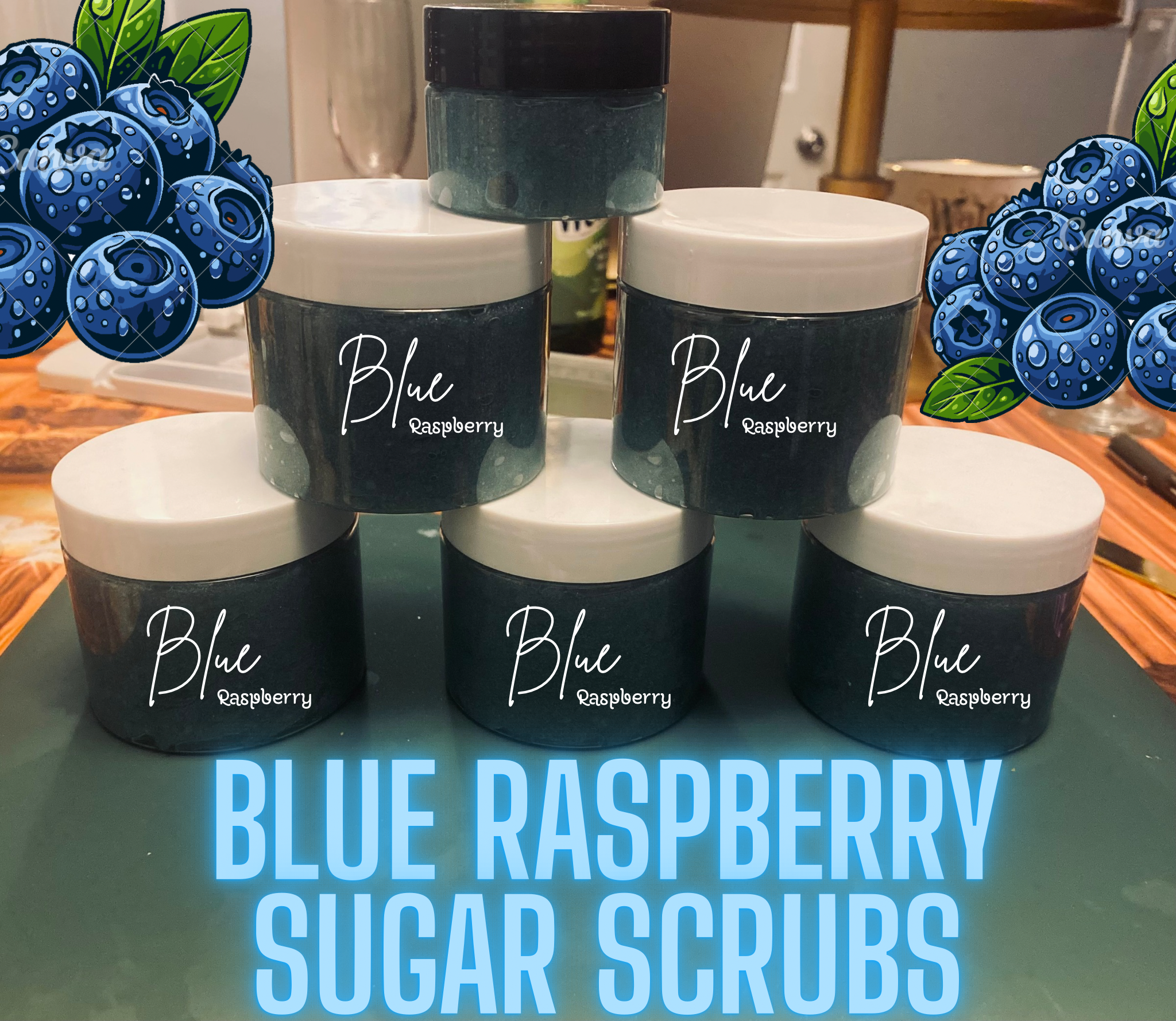 Exfoliating And Moisturizing Skin treatments to remove dead skin, improve circulation and soften your Skin.“BLUE RASPBERRY SUGAR SCRUBS”…….7