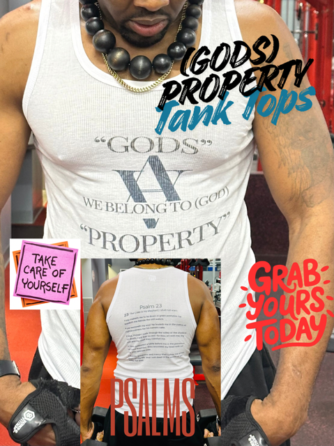 Soft White Tank Tops {GODS Property} For The Gym And The Beach With Psalm 23, 91 or 121 On The Back While You EXCERCISE!!!”LEARN THE PSALMS” AND TAKE CARE OF YOURSELF PHYSICALLY AND SPIRITUALLY…….7